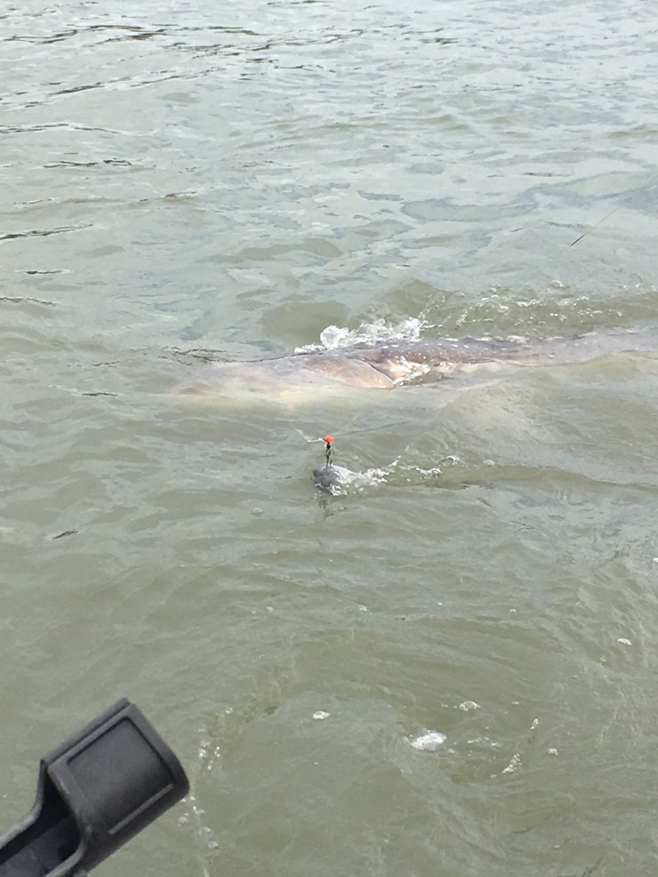 Braeden measured it, 7.5ft, took the photos and it was happily back in to the murky deep. They are pretty lethargic and do everything at a slow pace, however given their size even slow movements are very powerful. Alistair and my arms were burning and Braeden took this opportunity to tell us he has a harness to help fight the fish, but his rule is you only get it once you have fought one without!
