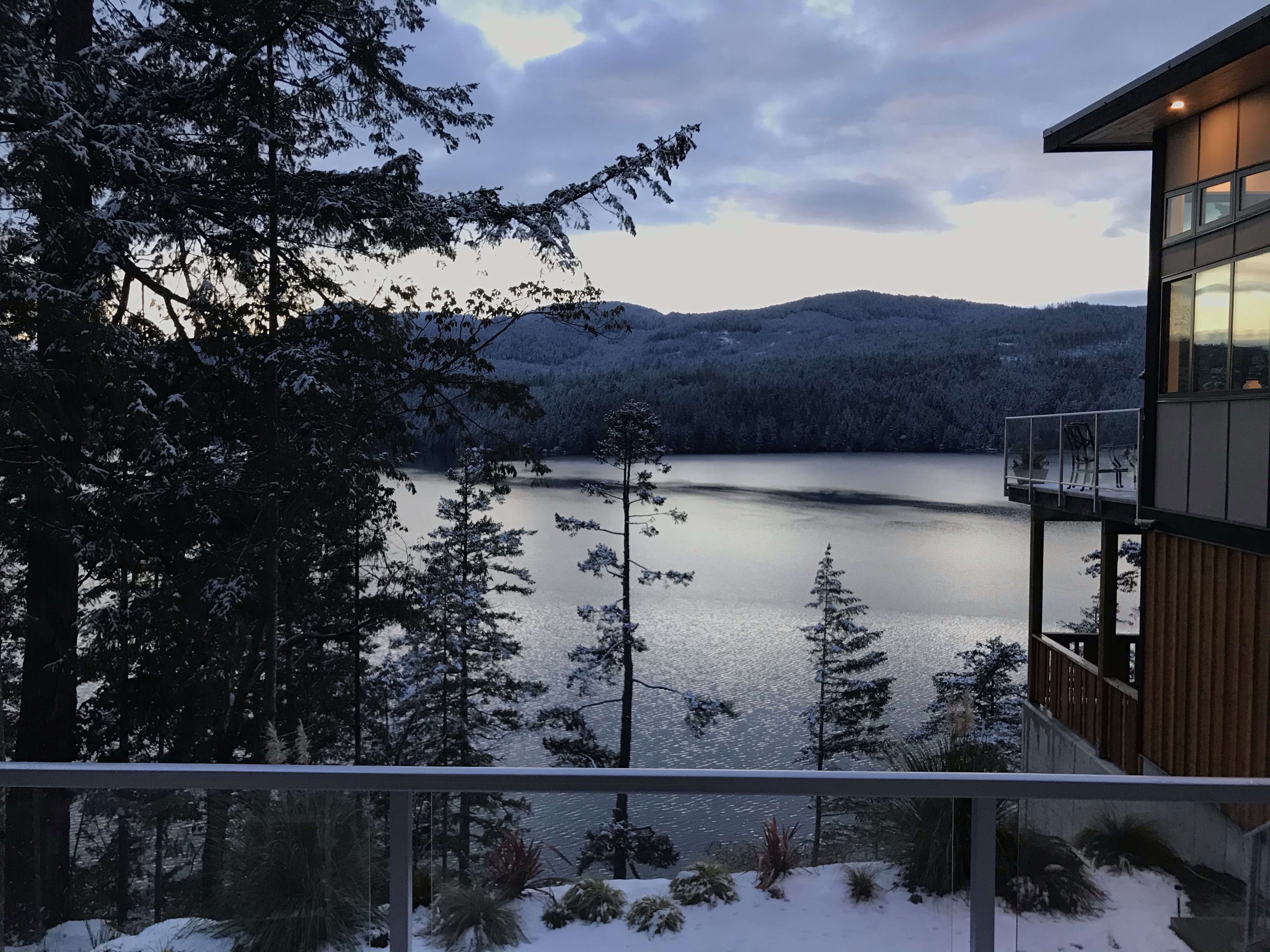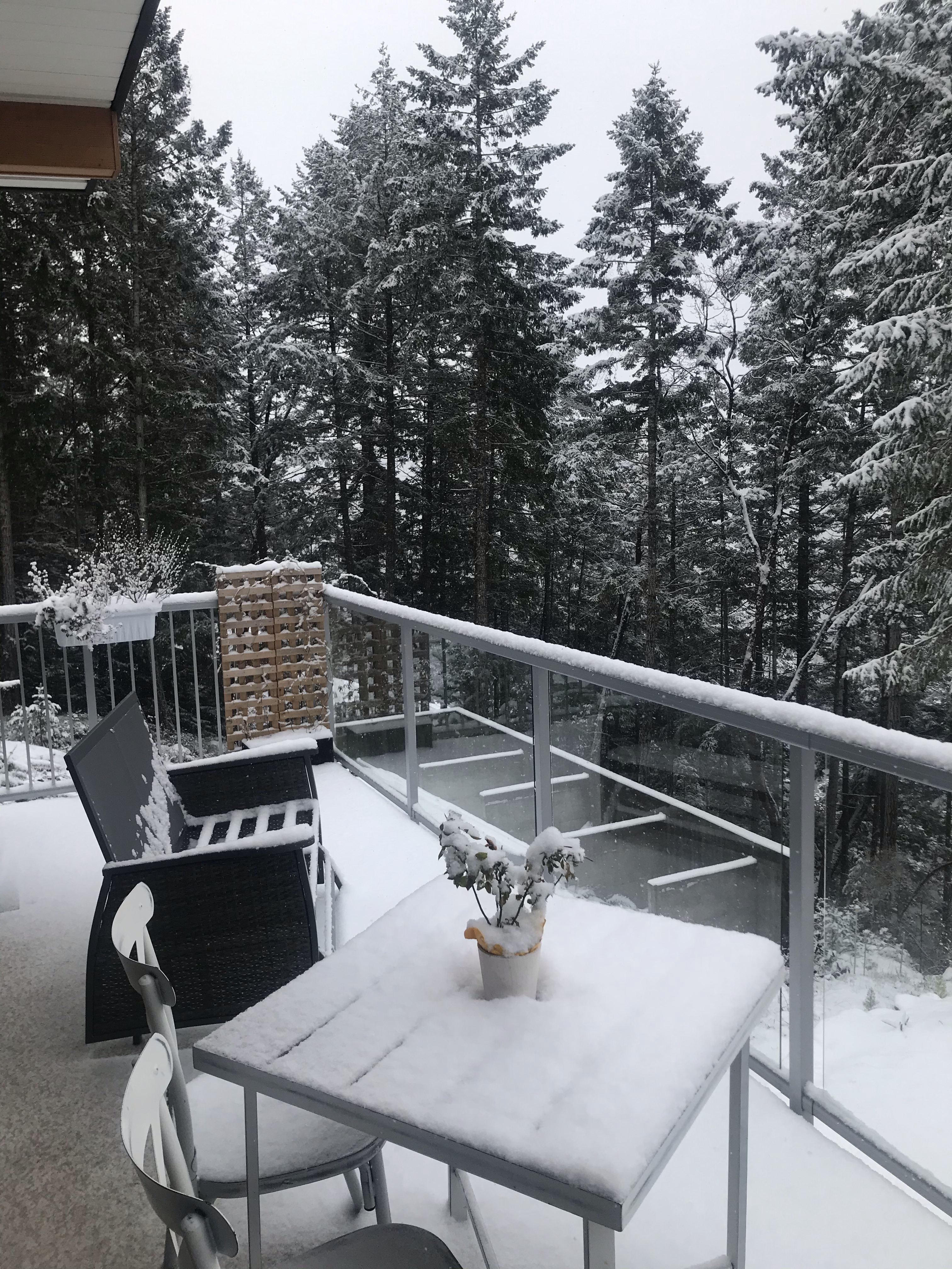 It was still snowing as I emerged to a sea view with the trees and ground blanketed in snow. Being from England (the Isle of Wight in particular, it never gets snow) makes snow very very exciting, Lauren just doesn’t understand. In England you assume Canada is frozen all winter and covered in snow. However, the little corner of Vancouver is not. It probably gets as much snow as London so the novelty has not worn off at all!!