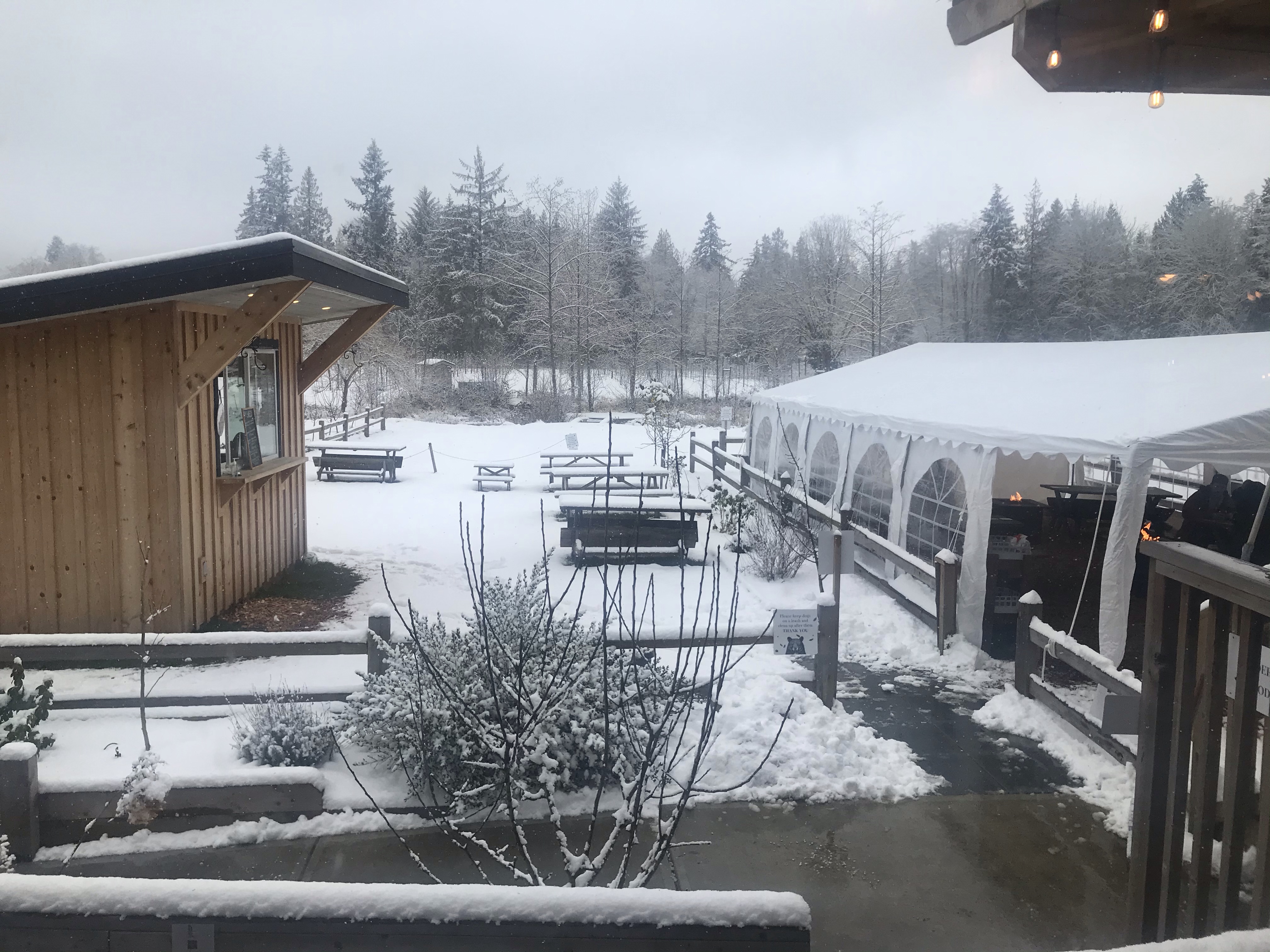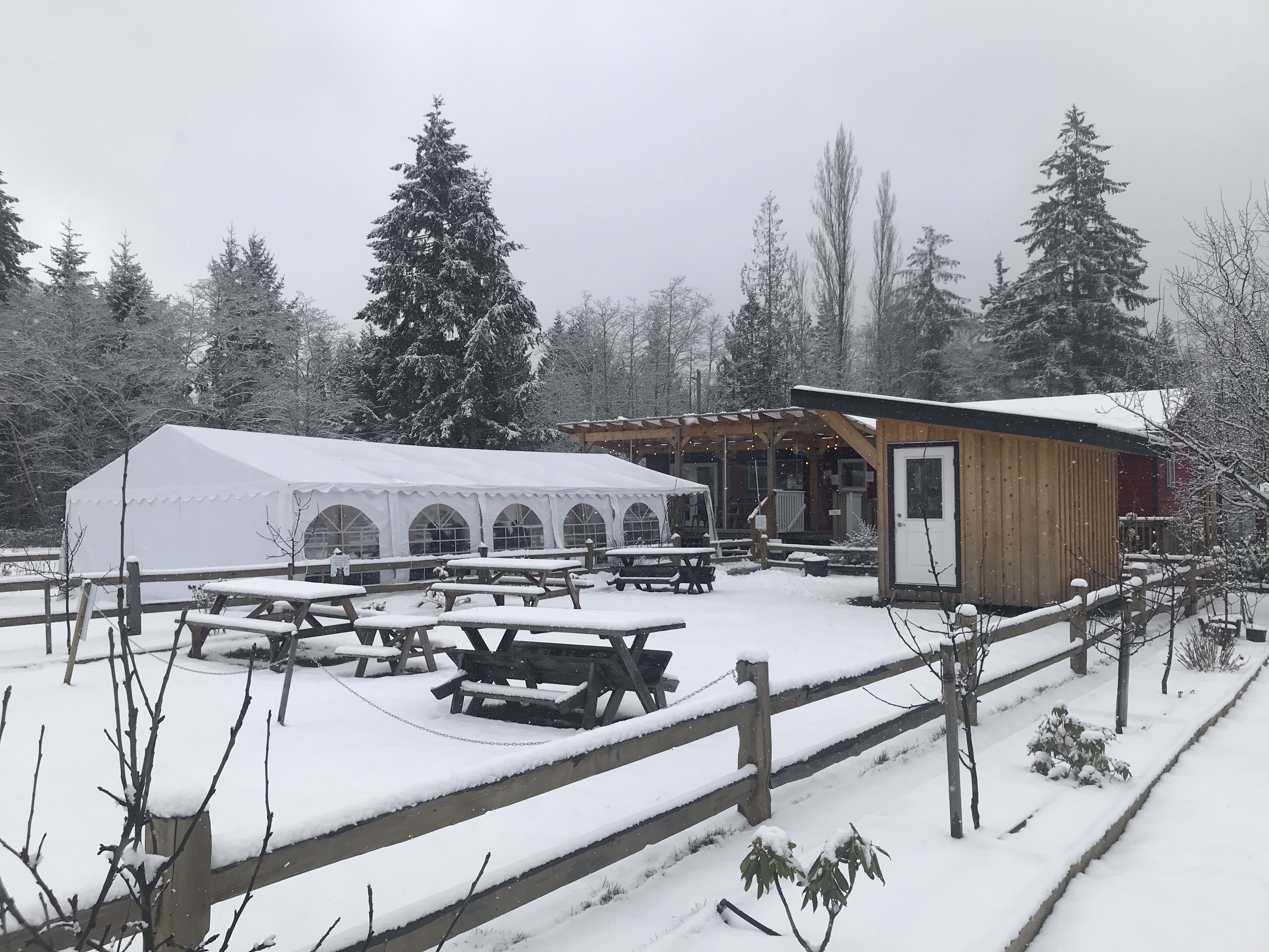 This was literally at the end of the road but so beautiful with the surrounding orchards and trees covered in snow. We shared two testing flights and despite neither of us loving cider were determined to buy some as their branded growlers are awesome. Having selected our two favourites it was home time for a relaxing afternoon and a splash in the hot tub.