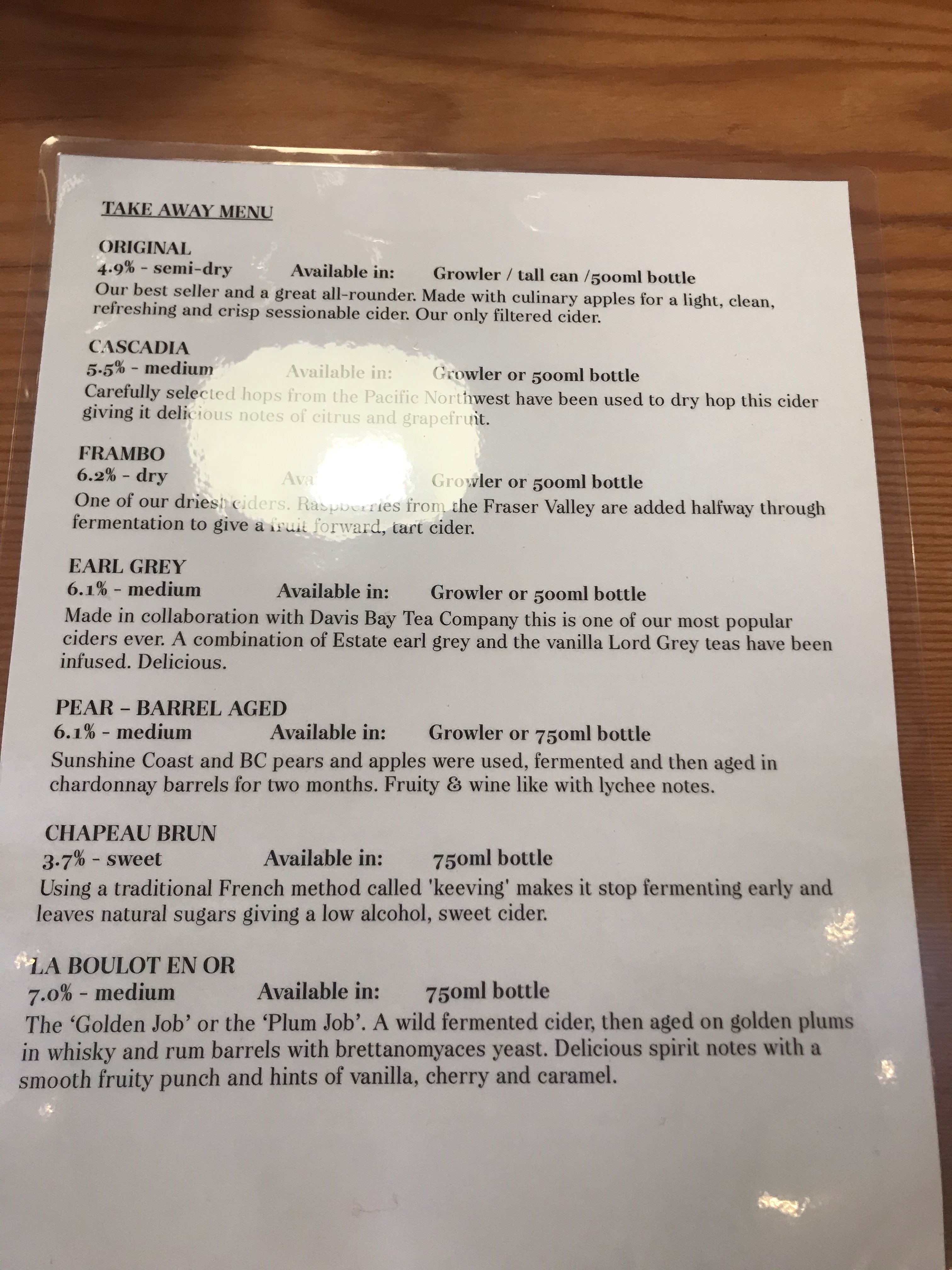 Having completed the town and with my feet getting wet, I refuse to buy a pair of boots everyone insists you need in Vancouver for the one day of snow a year, we decided to head to the Cidery (The Bricker Cider Company).