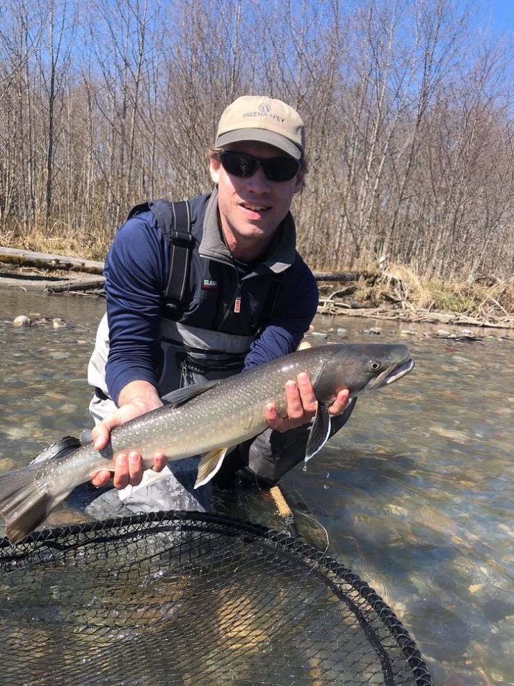 Finally it emerged on the surface and we realised it wasn’t going to run. It wasn’t a Steelhead but a monster Dolly Varden, a type of trout.
