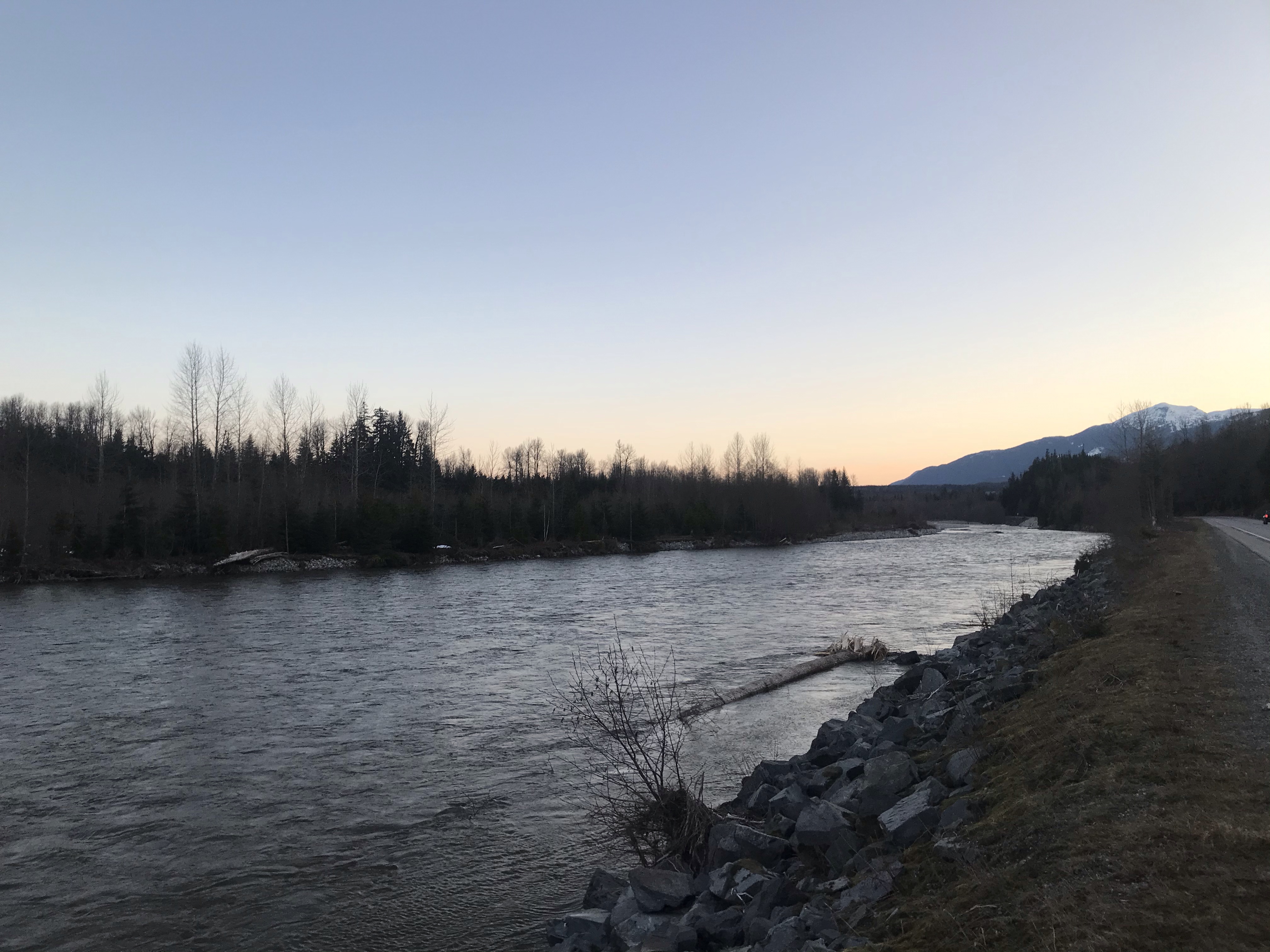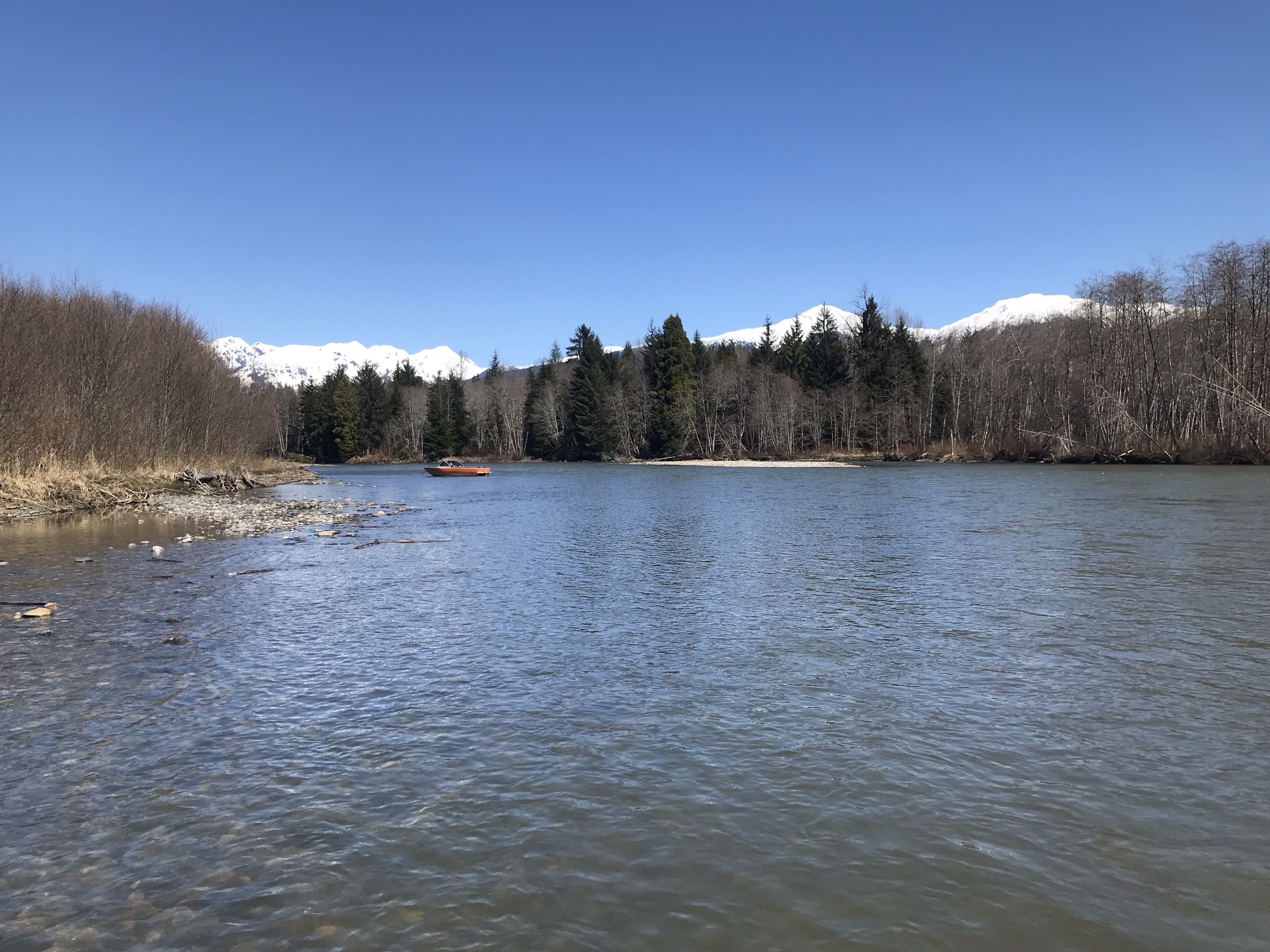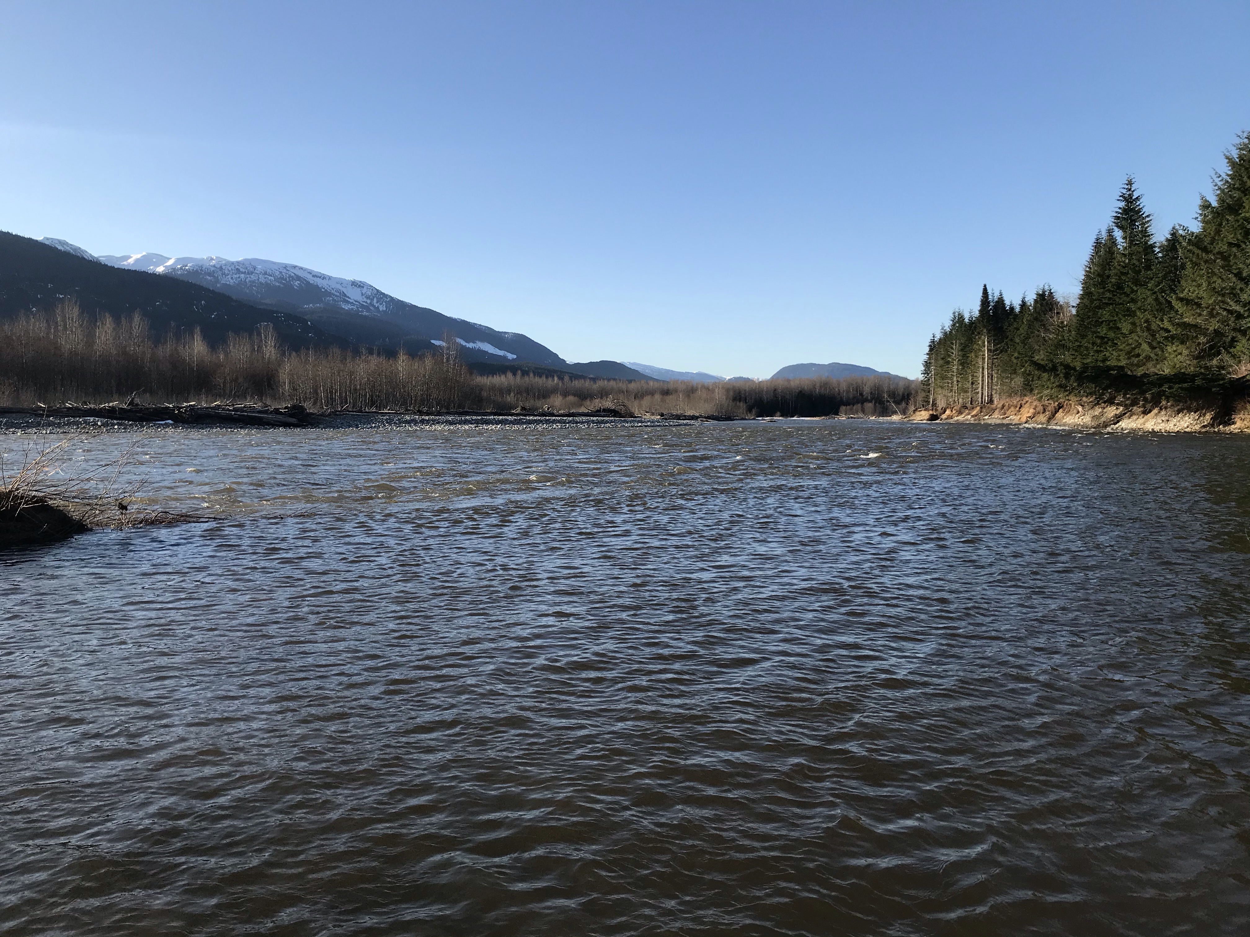 The excitement of snowmobiling was short lived as Jake text me shortly after to let me know the plan had changed as the Zymacord had blown out. As it turns out really hot weather in April is dreadful news for fishing! The mountain snow melt blows the rivers out and the visibility drops to zero as they collect all the winter dust and dirt. The new plan was to fish the Kitimat River before it blew out.