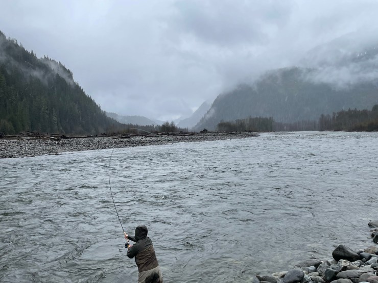 We tried one last pool but that was the end of the action. Actually depsite not landing a fish it had been one of my more action packed days on the Squamish river. It’s not a river full of fish but the quality of the fishing is good when the conditions are right, which they had been today. Good water level and visibility. It hadn’t been that cold in the end either apart from the toes and my right hand. The rod hand always struggles as the muscles sort of freeze in position. It seems to take about 24hrs to fully release but totally worth it.