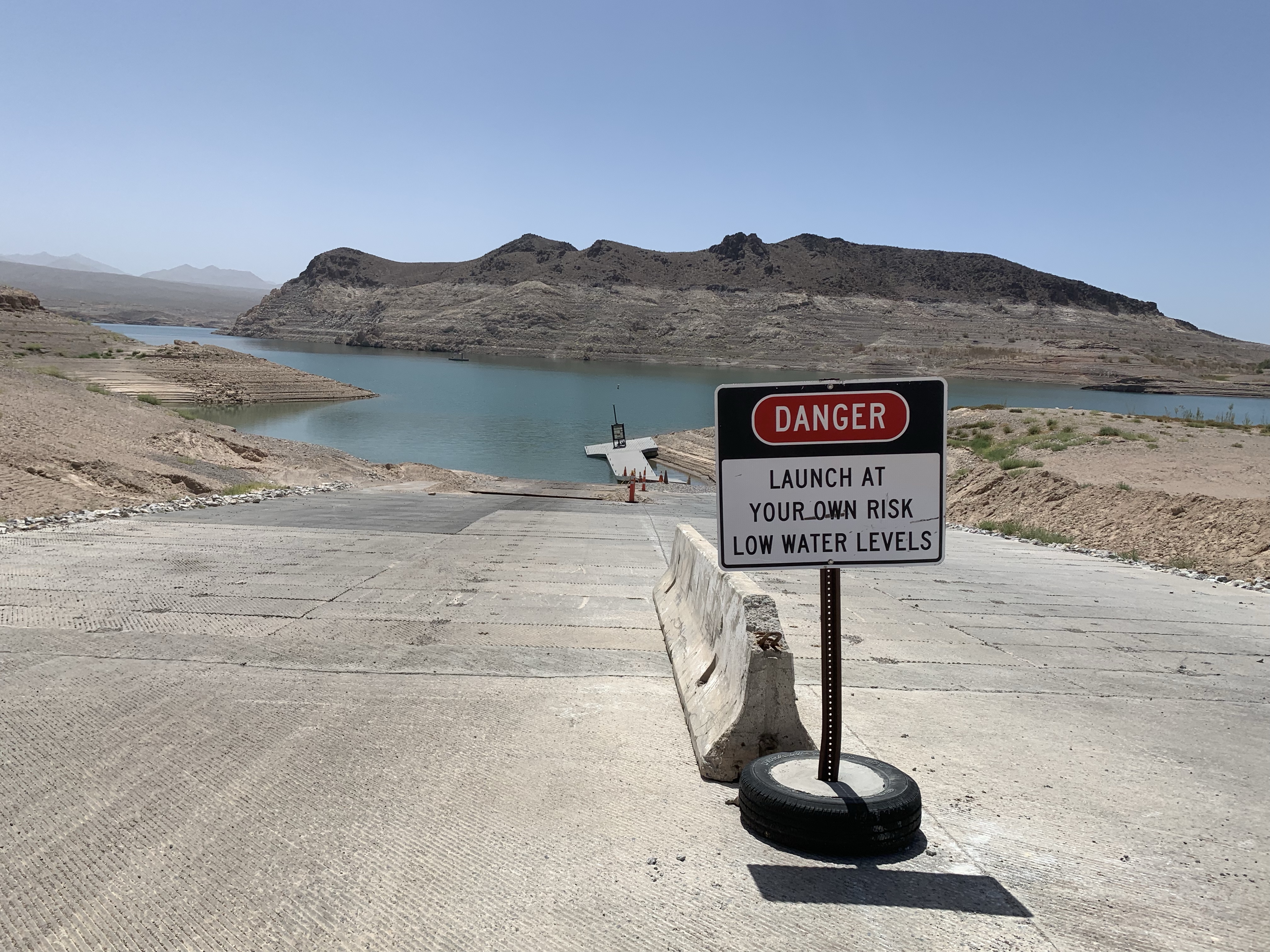 Having driven along the lake for a while I followed a hunch and we turned off down towards Echo Bay to explore. As we got closer the level of water drop caused by the 20-year drought really started to hit home. You can’t miss it as it’s as clear as day on the rocks. The slipway for launching had been extended again and again. A kayaking fisherman we met told us it was so low it was being closed the following Wednesday. It was particularly bad as since February they had let out close to 10m of water to support Las Vegas, Arizona and California.