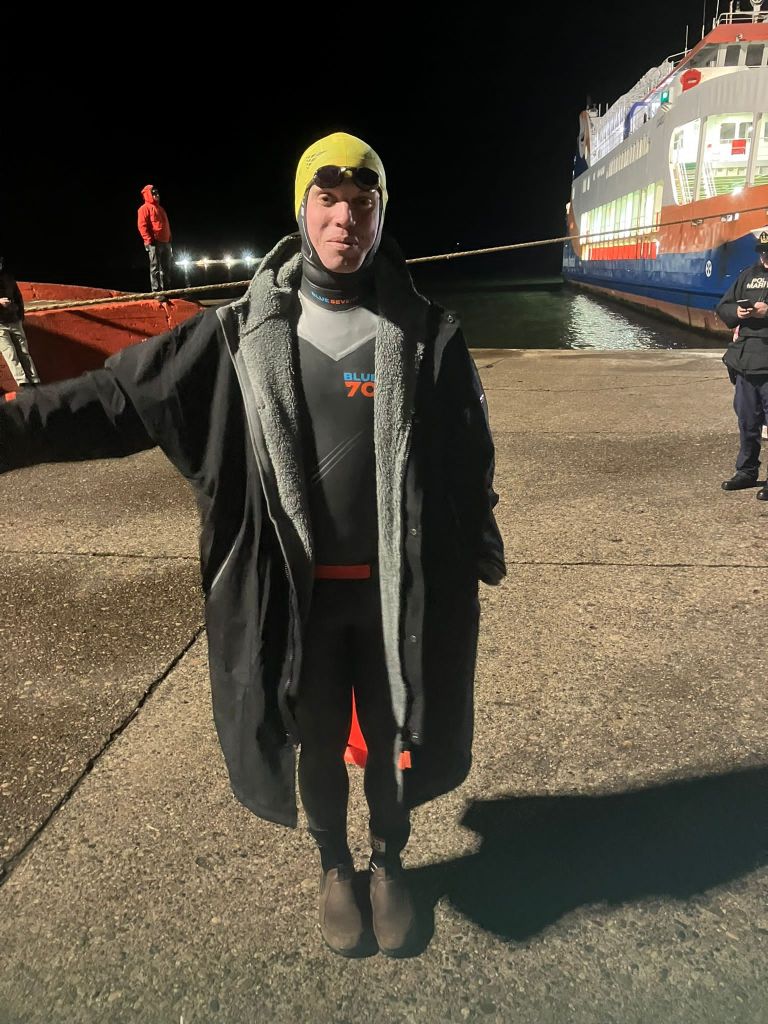 The announcement was followed by turning on the water cannons spraying sea water. I had been advised getting a good soak was essential to acclimatise but it didn’t make it any more pleasant. In between soakings I would do a few loops of the boat to try and keep warm and the body moving. For some reason there seemed to be a long delay in starting and some people were clearly cold. I was doing ok despite the temperature and nervous energy everywhere you looked.