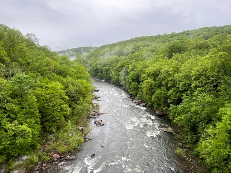 You just follow the river out of the city until you reach the Youghiogheny river, which you cross and then head up. This is the point where you move to limestone crush but it is immaculate so the cycling conditions are crazy good.