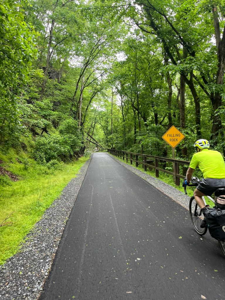 That is one observation of riding this rail trail. It has been a very good way through the mountains and lots of pretty trees and rivers. But it is only trees and rivers. I don’t think I have really seen what Pennsylvania and Maryland are like which is a bit of a shame.